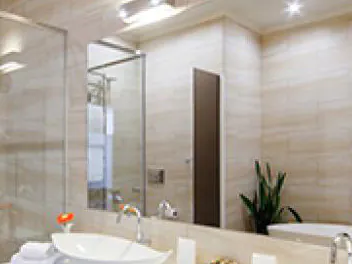 Des appliques murales installées sur un seul mur pourront mettre en avant les produits tout en éclairant subtilement la pièce. Les éclairages doivent donc avoir un blanc très chaud (2700 K) pour apporter un sentiment de bien-être et de relaxation.
