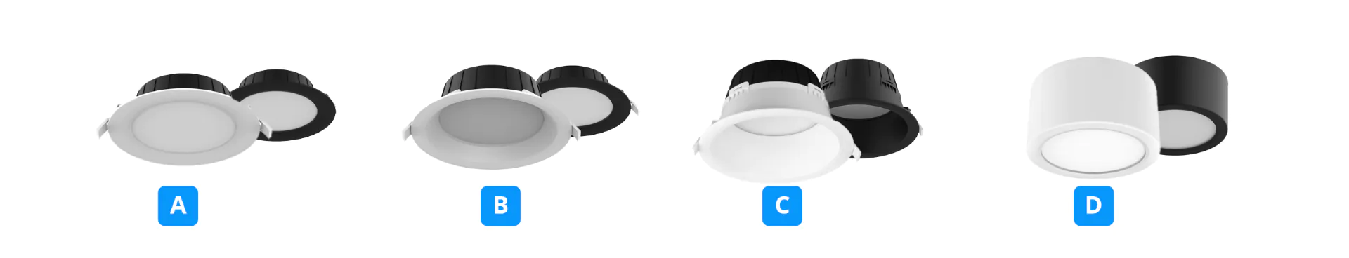 Avec trois tailles de découpe au choix -120 mm, 140 mm, 180 mm : ces downlights s'adaptent à tous vos projets d'éclairage et aux demandes de votre client.