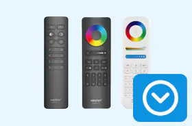 - LED monochrome – La télécommande pour ruban LED CCT Miboxer Sunrise dispose d'un bouton marche/arrêt pratique et d'une fonction dimmable : appuyez sur le bouton DIM et/ou faites glisser la barre de luminosité jusqu'au réglage souhaité. Une autre option est le Miboxer 1 zone CCT, qui vous permet de varier l'intensité à l'aide du curseur.