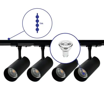 | Nom du fabricant | Complete Straight 1-meter 1-Phase Track Set Black incl. 4x Spot fixture + GU10 2700K 3W Dim - 1 Mete | |