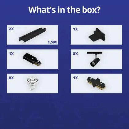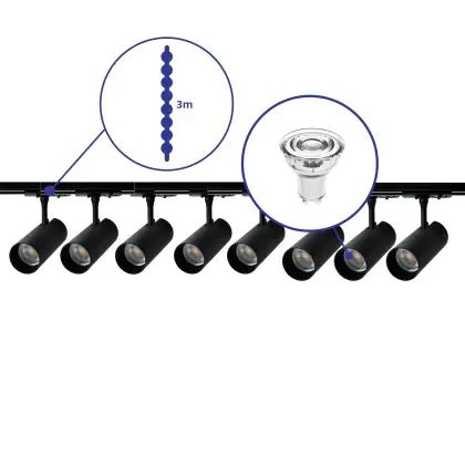 | Nom du fabricant | Complete Straight 3-meter 1-Phase Track Set Black incl. 8x Spot fixture + GU10 2700K 3W Dim – 2x 1.5 | |