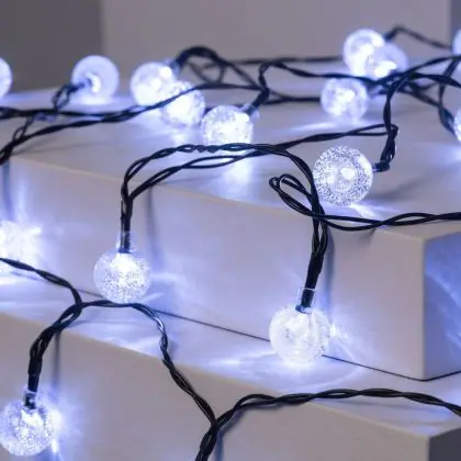 Bright Choice Guirlande lumineuse LED Moonballs ABS 1W 20lm - 850 Blanc Froid | IP65 - Solar