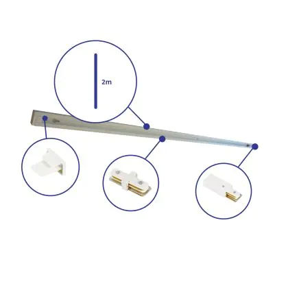 Bright Choice Rail Set Rail Monophasé 2 Mètre Blanc | incl. Embout, Connecteur d’Alimentation et I-Connecteur