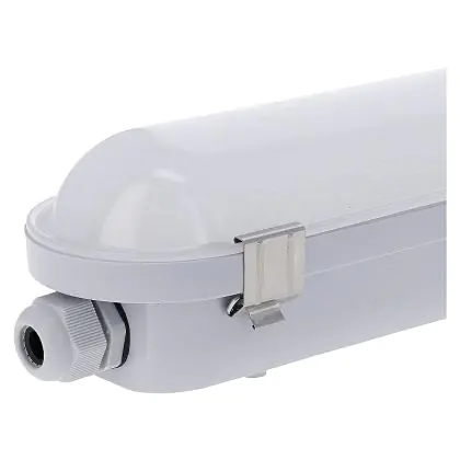 Un élément important des réglettes LED à prendre en compte est la valeur IP. Elle indique dans quelle mesure un produit est étanche à la poussière et à l'eau. L'indice IP44 signifie qu'un appareil est étanche aux éclaboussures et à partir de l'indice IP65, un luminaire LED est totalement étanche à la poussière et à l'eau. La valeur IP de cette réglette LED est : IP65 – Résistant à la poussière et à l'eau (jets d'eau). Si une réglette LED est totalement étanche, vous pouvez parfaitement l'utiliser dans des endroits où elle risque d'être mouillée, comme les écuries, les hangars, les sous-sols, les parkings et les espaces extérieurs.