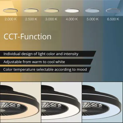 Le Brilliant Mazzaro Ventilateur Plastique Noir 36W 4700lm - 830-865 CCT+RGB | 485mm - Télécommande Dimmable doté d’un culot se distingue par les points suivants. La température de couleur de Kelvin, laquelle vous permettra de fournir une lumière de qualité et adaptée à votre environnement! Le code couleur, , n’inclut pas seulement la température de couleur, mentionné précedement, il indique également l’indice de rendu des couleurs. Cette caractéristique rend compte du naturel des couleurs des objets éclairés. L’indice de rendu des couleurs pour ce produit est de 80-89 - Bon rendu des couleurs , idéal pour son utilisation. Ci-dessous vous trouverez une liste des nombreux avantages de cette référence.