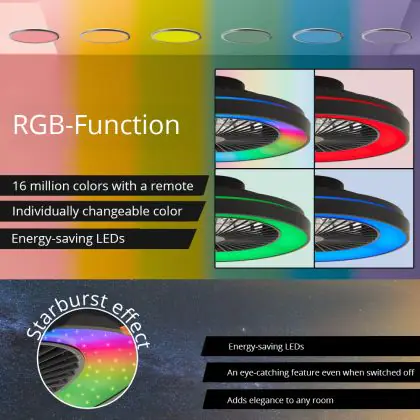 Description Brilliant Mazzaro Ventilateur Plastique Noir 36W 4700lm - 830-865 CCT+RGB | 485mm - Télécommande Dimmable