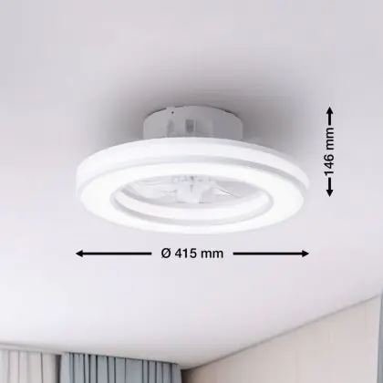 Investissez dans une solution à long terme, de heures en choisissant le Brilliant Mondello Ventilateur Plastique Blanc 23W 3100lm - 827-865 CCT | 420mm - Télécommande Dimmable.