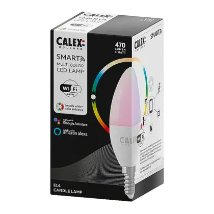 Cette ampoule LED E14 calex intelligente peut également être commandée via une télécommande officielle Calex Smart. De plus, cette ampoule Calex fonctionne sur un interrupteur mural, mais pas sur un variateur. Vous recherchez un éclairage intelligent avec, par exemple, un luminaire différent ou sous une forme différente? Cliquez pour voir notre sélection d’éclairage intelligent.
