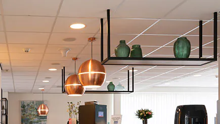 Nous disposons d'une vaste gamme de spots (dimmables) qui constituent l'éclairage général de vos locaux (blanc chaud, froid ou accordable). Vous pouvez les combiner parfaitement avec nos éclairages design pour créer l'atmosphère requise et créer une expérience inédite aux clients. Notre éclairage de qualité professionnelle permet à votre personnel d'assister parfaitement les clients.