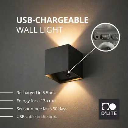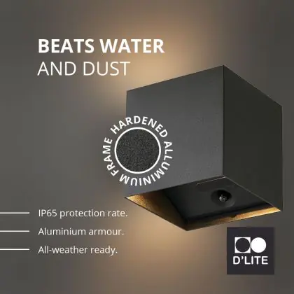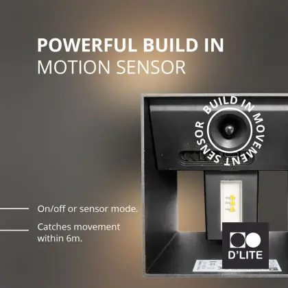 L’applique D'Lite Elingen Up & Down allie esthétique contemporaine et grande flexibilité d’installation. Sa conception sans fil permet une pose simple et rapide, sans besoin de raccordement électrique. Le capteur de lumière améliore l’efficacité énergétique en assurant un allumage automatique uniquement lorsque nécessaire. Son design robuste et élégant en fait un choix judicieux pour une ambiance extérieure réussie.