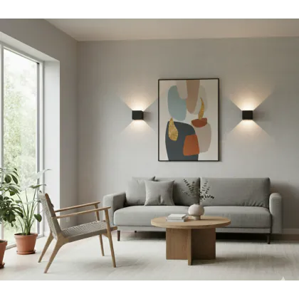 Description D'Lite Applique Murale Nova Aluminium Noir Up & Down 4.9W 480lm - 830 Blanc Chaud | IP54 - Angle de faisceau réglable