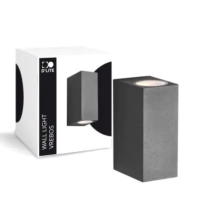 Description D'Lite Applique Murale Vrebos Aluminium Noir Up & Down | IP54 - Convient Pour 2x GU10