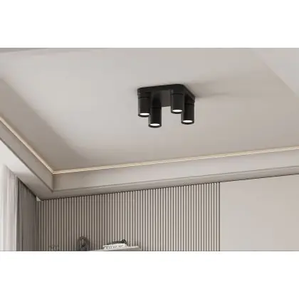 Le D'Lite Plafond Spot Clio Aluminium Noir Inclinable| Convient pour 4x GU10 doté d’un culot se distingue par les points suivants. La température de couleur de Kelvin, laquelle vous permettra de fournir une lumière de qualité et adaptée à votre environnement! Le code couleur, , n’inclut pas seulement la température de couleur, mentionné précedement, il indique également l’indice de rendu des couleurs. Cette caractéristique rend compte du naturel des couleurs des objets éclairés. L’indice de rendu des couleurs pour ce produit est de , idéal pour son utilisation. Ci-dessous vous trouverez une liste des nombreux avantages de cette référence.