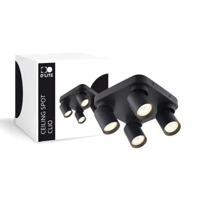 Commandez les D'Lite Plafond Spot Clio Aluminium Noir Inclinable| Convient pour 4x GU10 sur notre site et bénéficiez de nos nombreux avantages: des produits de la marque D'Lite, gage de grande qualité. Investissez dans le meilleur de l’éclairage.