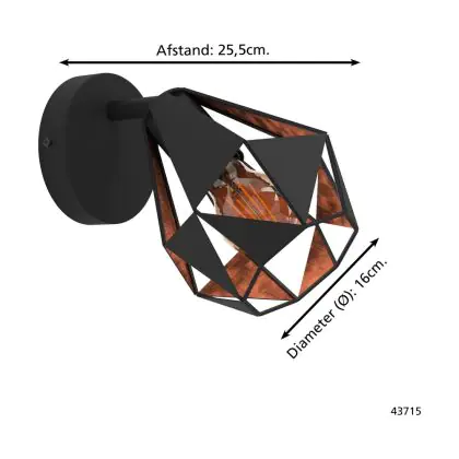 Commandez les Eglo Applique Murale Carlton 7 Acier Noir Cuivre | IP20 - Convient pour 1x E27 sur notre site et bénéficiez de nos nombreux avantages: des produits de la marque Eglo, gage de grande qualité. Investissez dans le meilleur de l’éclairage.