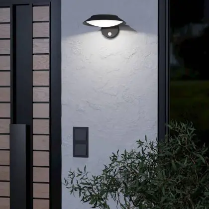Eglo Applique Murale Cerrisi Solar Noir 7W 800lm - 830 Blanc Chaud | IP65 - Détecteur De Mouvement