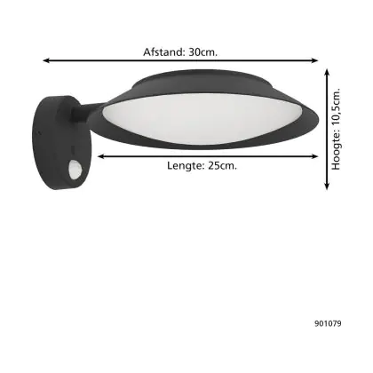 Description Eglo Applique Murale Cerrisi Solar Noir 7W 800lm - 830 Blanc Chaud | IP65 - Détecteur De Mouvement