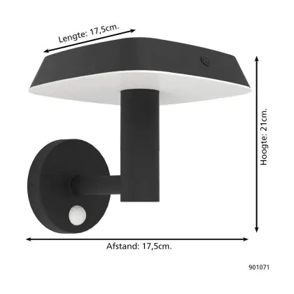 Description Eglo Applique Murale Dreoli Solar Noir 8W 970lm - 830 Blanc Chaud | IP65 - Détecteur De Mouvement