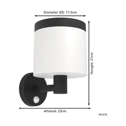 Description Eglo Applique Murale Pantete Solar Noir 7W 790lm - 830 Blanc Chaud | IP65 - Détecteur De Mouvement