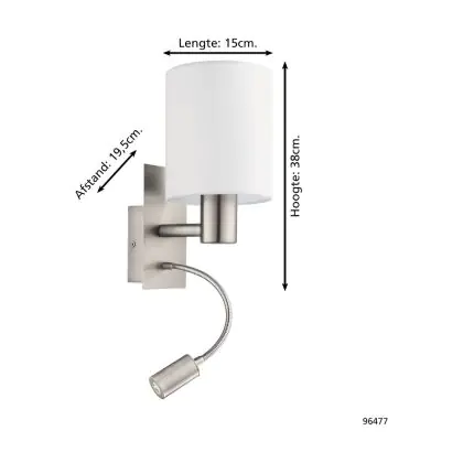 Description Eglo Applique Murale Pasteri Acier Nickel Satiné 40 | IP20 - Incl. Spot et Excl. 1x E27
