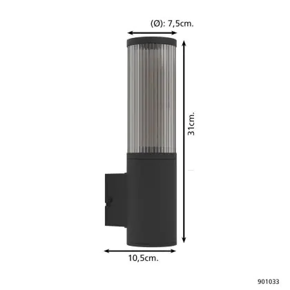 Description Eglo Applique Murale Salle Extérieur Aluminium Noir | Convient pour E27