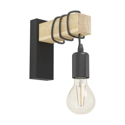 Investissez dans une solution à long terme, de heures en choisissant le Eglo Applique Murale Townshend Acier Bois Noir Brun | IP20 - Convient pour 1x E27 .