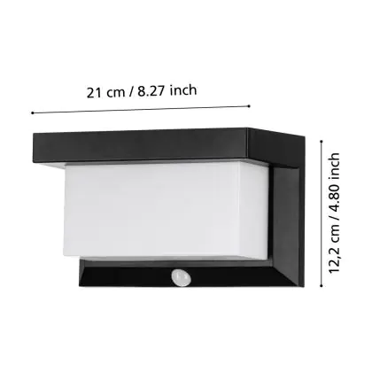 Description Eglo Applique Murale Utrera Solar Noir 800lm - 840 Blanc Froid | IP44 - Détecteur De Mouvement