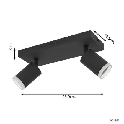 Description Eglo Connect.Z Smart Plafond Spot Melitello-Z Acier Noir 7.4W 1100lm - 827-865 Variable Blanc + RGB | Dimmable