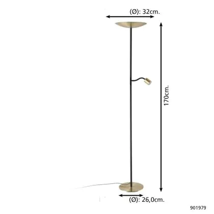 Investissez dans une solution à long terme, de 15000 heures en choisissant le Eglo Lampadaires Salon Conivarino Acier Brushed Laiton, Noir 30.5W 3150lm - 827 Blanc Très Chaud | Dimmable.