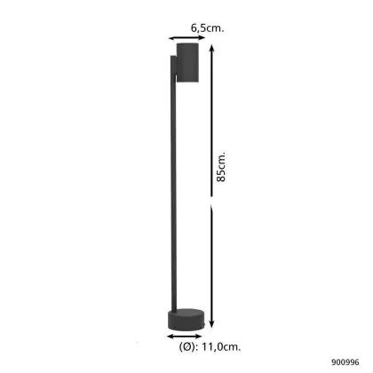 Description Eglo Lampadaires Salon Izzalini Extérieur Acier Noir 2.8W 250lm - 830 Blanc Chaud | Convient pour GU10