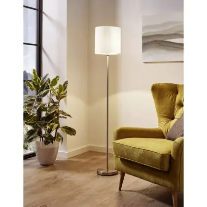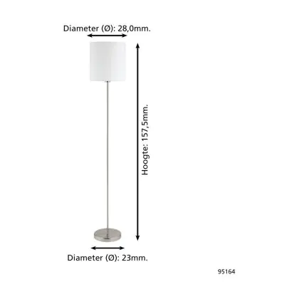 Description Eglo Lampadaires Salon Pasteri Acier Nickel Satiné Blanc | IP20 - Convient pour 1x E27