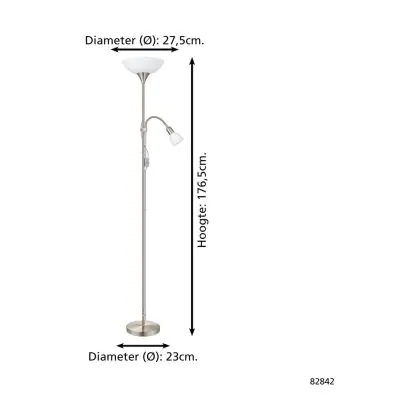 Description Eglo Lampadaires Salon Up 2 Acier Nickel Satiné | IP20 - Convient pour 1x E27