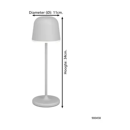Description Eglo Lampe De Chevet Mannera Aluminium Gris 2W 200lm - 830 Blanc Chaud | IP54 - Touch Dimmable - USB-C