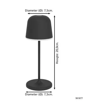 Description Eglo Lampe De Chevet Mannera-S Aluminium Noir 1W 170lm - 825-830-840 CCT | IP54 - Touch Dimmable - USB-C