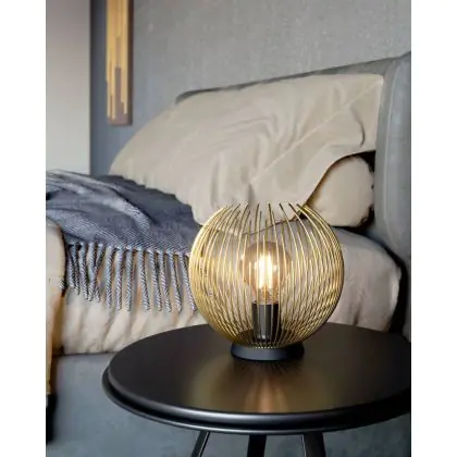 Description Eglo Lampe De Chevet Venezuela Noir, Dorée | Convient pour 1x E27