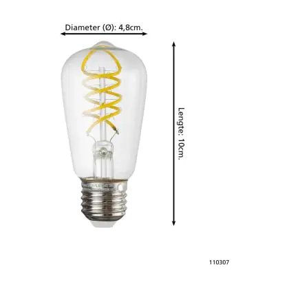 Description Eglo LED E27 Edison Claire Filament 7.3W 806lm - 827 Blanc Très Chaud | Équivalent 60W