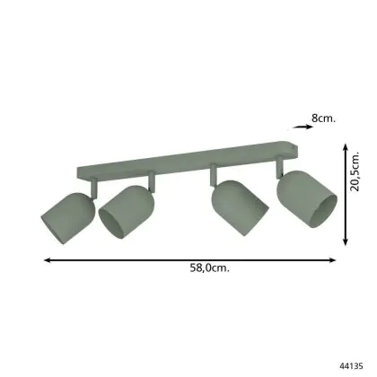 Description Eglo Plafond Spot Tilston Acier Vert | Convient pour 4x E14