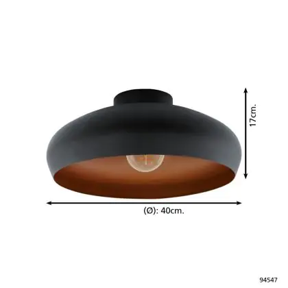 Description Eglo Plafonnier Mogano Noir, Cuivre | Convient pour E27