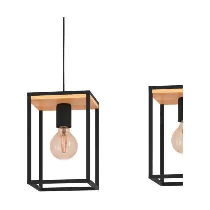 Description Eglo Suspension Luminaire Libertad Acier Bois Noir Brun | IP20 - Convient pour 3x E27