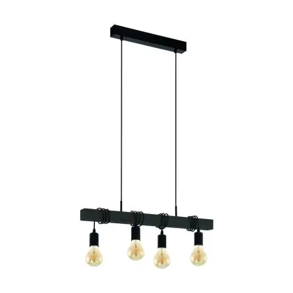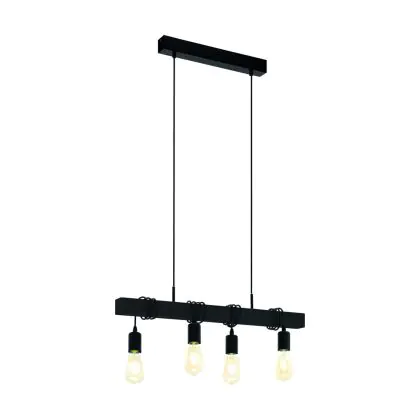 Description Eglo Suspension Luminaire Townshend Acier Bois Noir | IP20 - Convient pour 4x E27