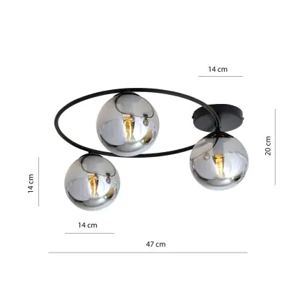 Caractéristiques du Emibig Plafonnier Sopra Acier Noir | Convient pour 3x E14 - Max 10W
