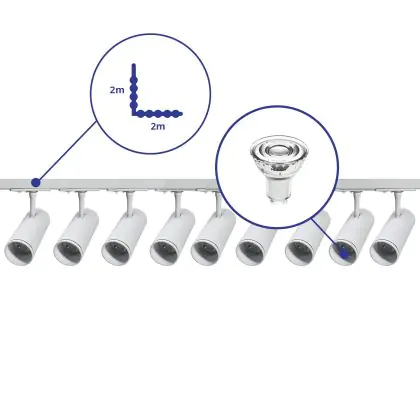 | Nom du fabricant | Complete L shaped 1-Phase Track Set White incl. 9x Spot fixture + GU10 2700K 3W Dim – 2 x 2 meters i | |