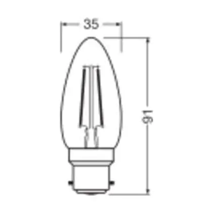 Description Ledvance Classic LED B22 Bougie Filament Claire 1.8W 250lm - 827 Blanc Très Chaud | Équivalent 25W