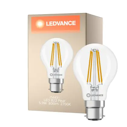 Le Ledvance Classic LED B22 Poire Filament Claire 5.9W 806lm - 827 Blanc Très Chaud | Équivalent 60W est l'alternative parfaite à vos anciennes ampoules halogènes conventionnelles. Alimentées en 230v (et donc sans transformateur), ces ampoules sont fiables et robustes.