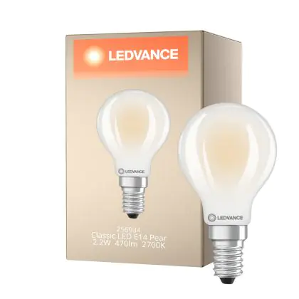 Ledvance Classic LED E14 Poire Dépolie 2.2W 470lm - 827 Blanc Très Chaud | Équivalent 40W est le produit de remplacement parfait pour votre ancienne ampoule de 40W avec un culot E14 grâce à sa technologie LED. Passer à la LED vous offrira de nombreux avantages !