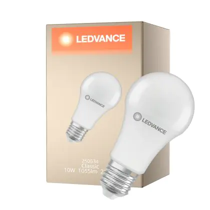 Ledvance Classic LED E27 Poire Dépolie 10W 1055lm - 827 Blanc Très Chaud | Détecteur De Mouvement Et De Lumière - Équivalent 75W est le produit de remplacement parfait pour votre ancienne ampoule de 75W avec un culot E27 grâce à sa technologie LED. Passer à la LED vous offrira de nombreux avantages !
