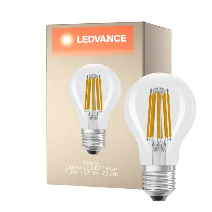 Ledvance Classic LED E27 Poire Filament Claire 7.2W 1521lm - 827 Blanc Très Chaud | Équivalent 100W est le produit de remplacement parfait pour votre ancienne ampoule de 100W avec un culot E27 grâce à sa technologie LED. Passer à la LED vous offrira de nombreux avantages !