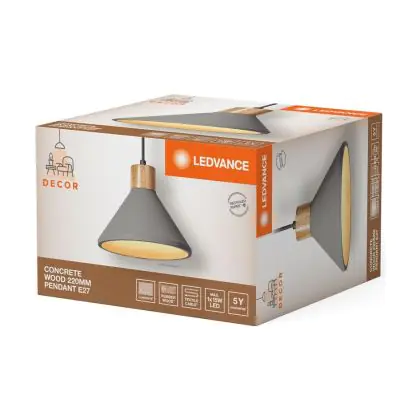 Caractéristiques du Ledvance Decor Béton/Acier/Bois Suspension Luminaire 220 Foncé Gris | Convient pour E27
