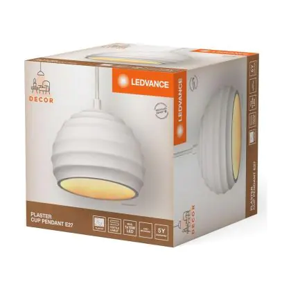 Investissez dans une solution à long terme, de heures en choisissant le Ledvance Decor Plâtre/Acier Cup Suspension Luminaire Blanc | Convient pour E27.