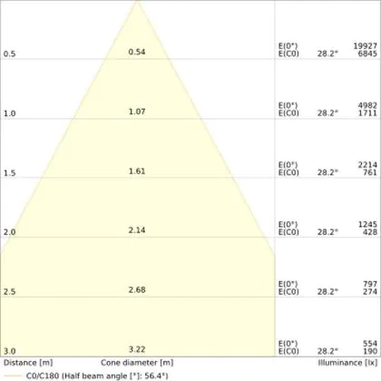 Ce downlight a un angle de 55°degrés, il peut donc être utilisé dans de nombreux environnements de travail et/ou dans les maisons.